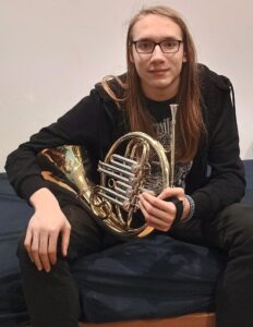 Neben Waldhorn spielt Bjarne auch Gitarre, Bass und Trompete. Wenn not am Mann ist, setzt sich der Multiinstrumentalist auch hinters Schlagzeug.